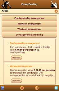 Voor Flying Bowling is een aparte versie van de website gemaakt voor mobiele telefoon, iPad en andere tablets. De webapp toont dezelfde content als de site, maar aangepast aan een kleiner formaat scherm. Deze webapp is gemaakt met jQuery Mobile, wat goede ondersteuning van alle modernere smartphones garandeert. |